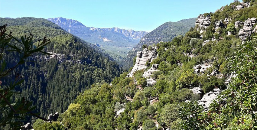 در شمال غربی آنتالیا رشته کوه های توروس و پارک ملی زیبای گولوک داگی واقع شده است. شهر باستانی پیسیدیه بر روی سکویی طبیعی در بالای کوه ساخته شده و با جنگلهای انبوه کاج و گیاهان نادر فراوان احاطه شده است.