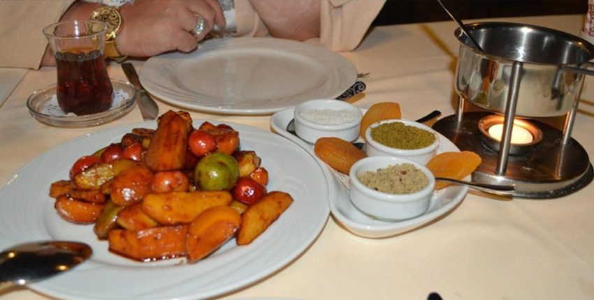این رستوران مناسب گیاه خواران می باشد. پیش غذاهای مختلف (مزه) به صورت بوفه است و با هر بار پرداخت می توانید فقط یک بشقاب سایز متوسط میل کنید.